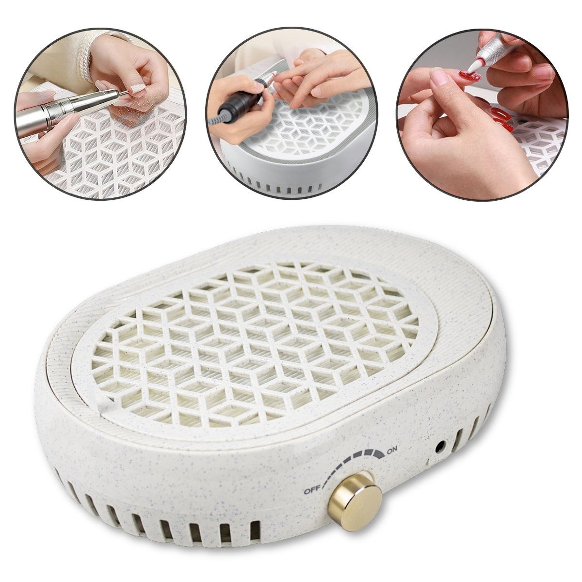 - Projetado para aspirar resíduos durante o lixamento de unhas de gel e fibra;