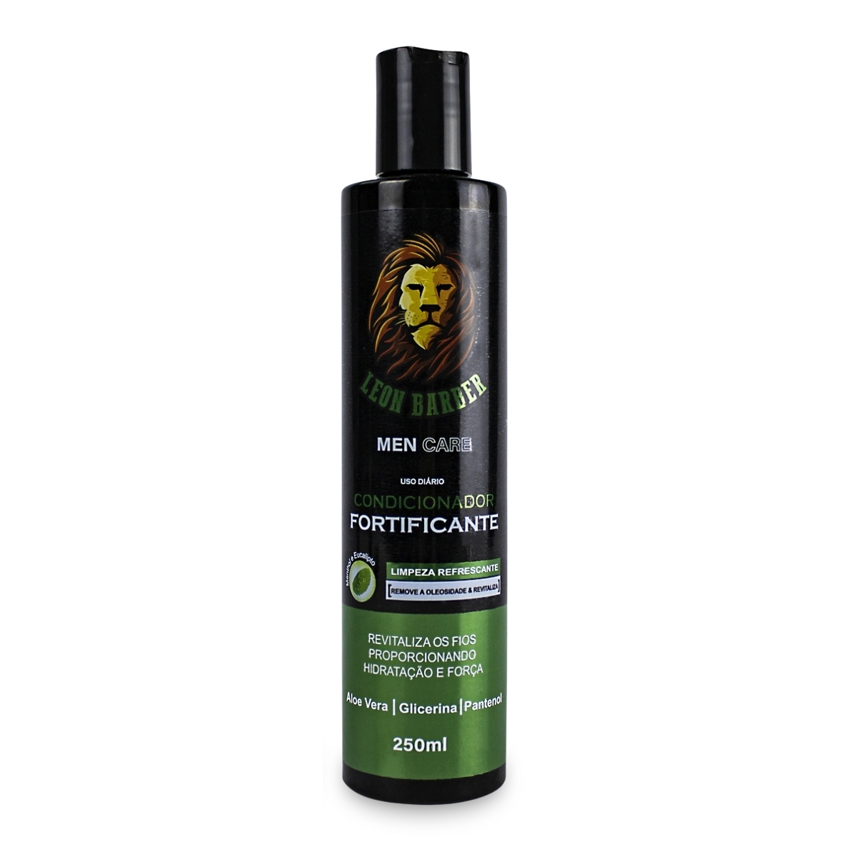 O Condicionador Fortificante para barba Leon Barber foi desenvolvido para hidratar o DNA da fibra capilar. Ele restaura e hidrata, garantindo maciez e fortalecimento dos fios da raiz até as pontas. Sua fórmula inclui Aloe Vera, Glicerina e Pantenol, que proporcionam uma hidratação profunda, força e maciez. A formulação também conta com Menthol e Eucalipto, responsáveis por proporcionar uma sensação de frescor e limpeza. Além de hidratar, o condicionador auxilia no fortalecimento da fibra capilar, contribuindo para fios mais resistentes e com aparência saudável. Indicado para uso diário, completa a rotina de cuidados masculinos, oferecendo limpeza refrescante, hidratação duradoura e sensação de frescor após o uso.