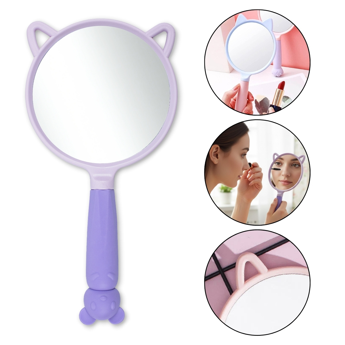 01 - Espelho de Mão Redondo Orelhas de Gatinho