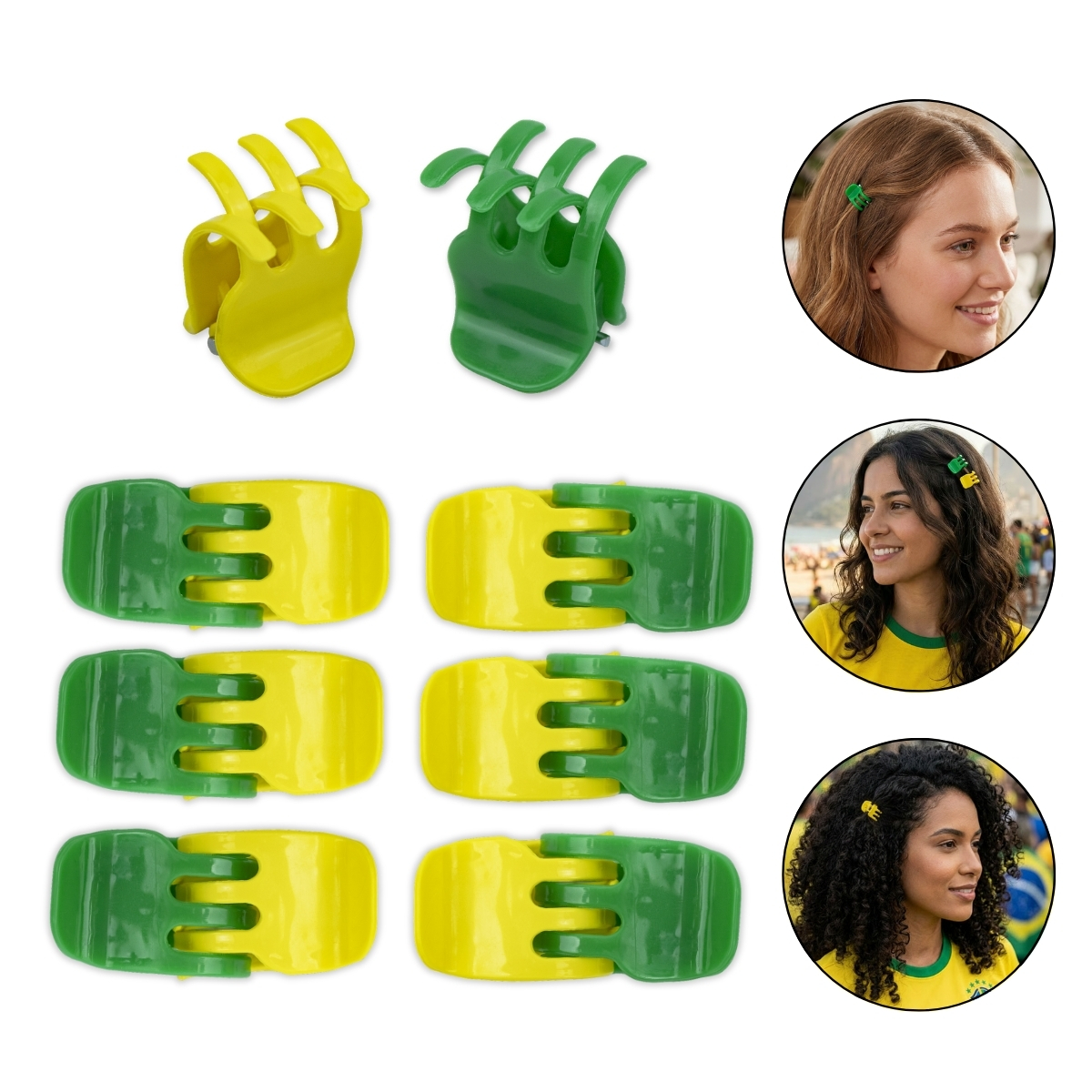 Essas Mini Presilhas de Cabelo em Formato Tridente permitem estilizar e prender os cabelos de formas variadas. Possuem um design único de três pontas, sendo ideais para uso em todos os tipos de cabelos. Nas cores verde e amarelo, elas são perfeitas para quem deseja adicionar um toque divertido e cheio de estilo no visual. Podem ser usadas para prender pequenas mechas ou criar penteados criativos. São funcionais e a escolha perfeita para entrar no clima de torcida! Seja para assistir os jogos da copa do mundo com os amigos ou compor um look temático, o kit traz as cores da torcida brasileira para o seu cabelo de forma divertida.