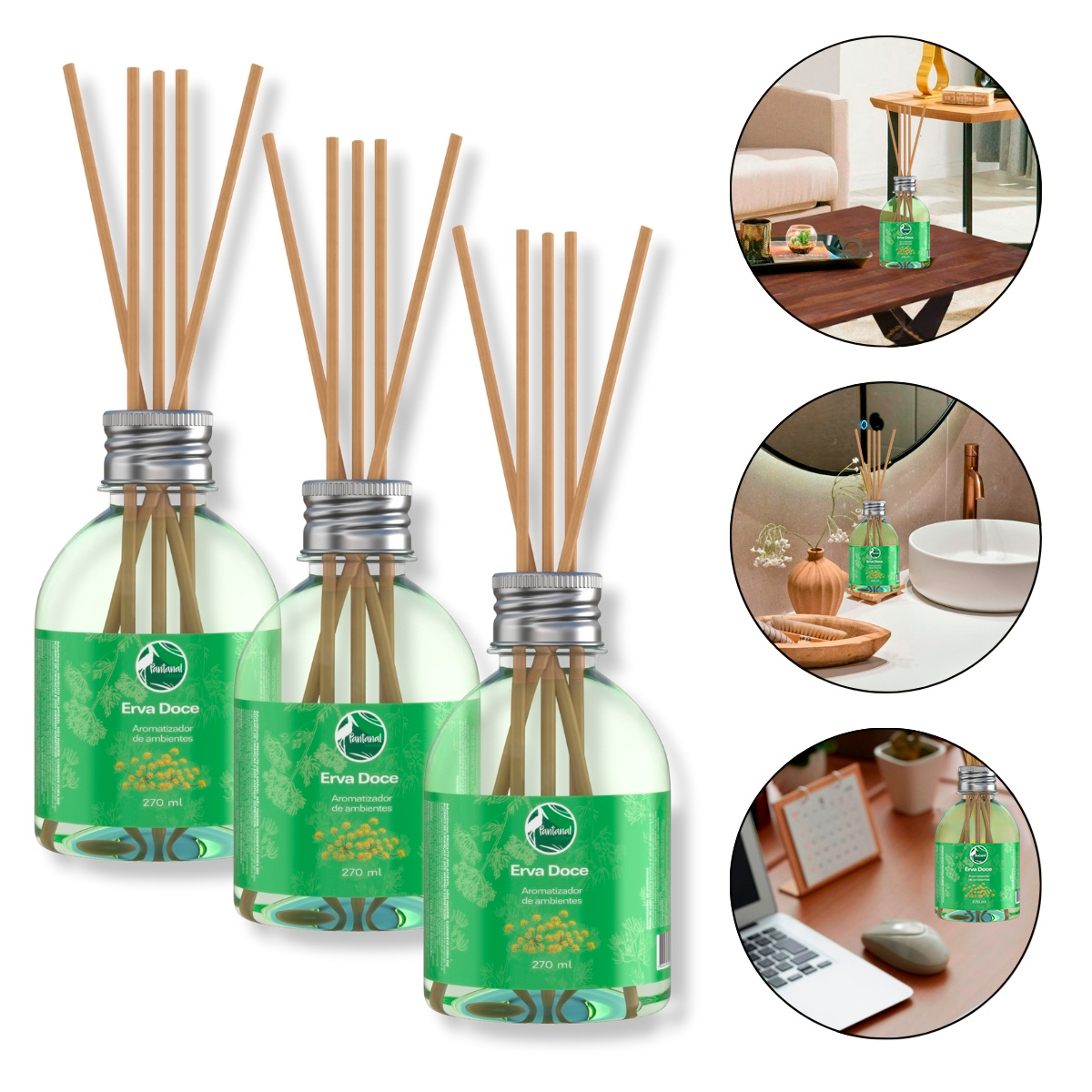 03 - Aromatizadores Difusores de Ambiente, Erva Doce, 270 ml, Pantanal Aromas