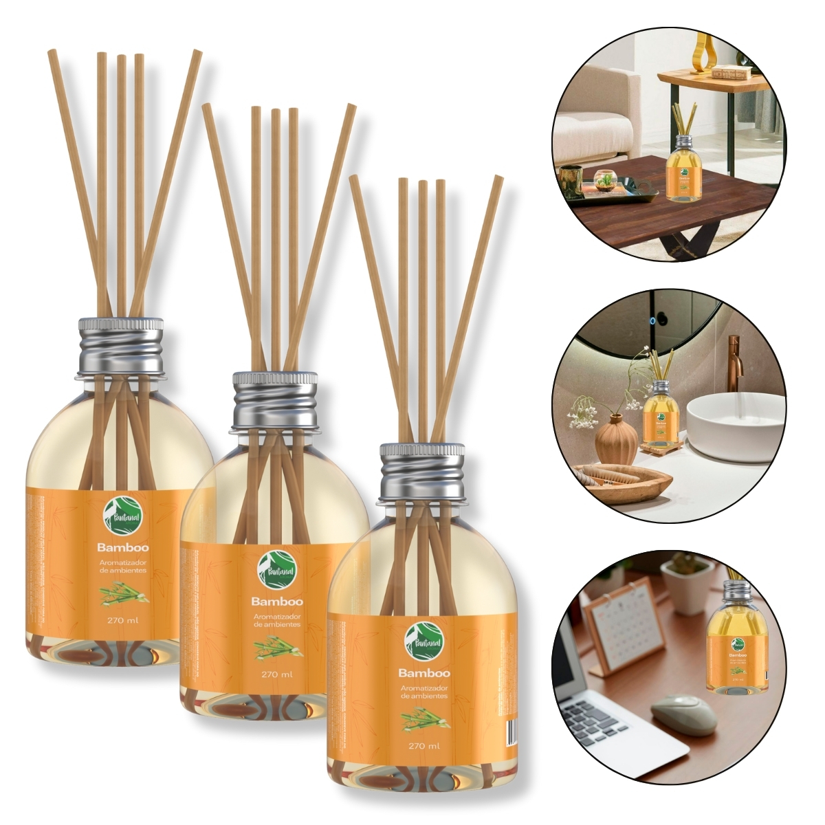 03 - Aromatizadores Difusores de Ambiente Bamboo 270ml Pantanal Aromas