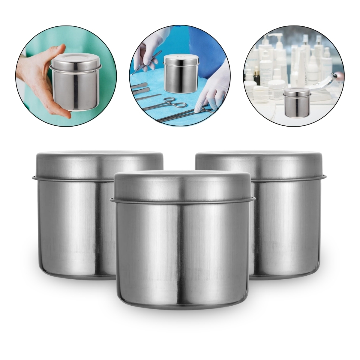 Esse kit conta com 3 Potes Porta Gaze em Inox com 9cm, ideais para um armazenamento higiênico e seguro de algodões, gazes, cotonetes e pequenos instrumentos. Fabricados em aço inoxidável, são simples de limpar e esterilizar, proporcionando maior durabilidade e proteção contra contaminações. São indicados para uso em clínicas de estética, podologia, consultórios odontológicos, salões de manicure e outros ambientes que precisam de higiene e organização no manuseio dos materiais. O tamanho compacto dos potes facilita o manuseio e a acomodação em bandejas ou bancadas.