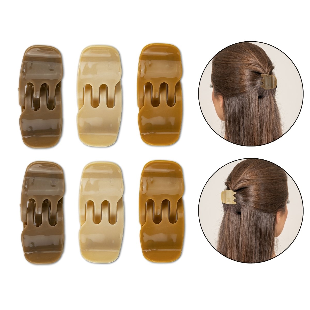 48 - Presilhas de Cabelo Médias Formato Tridente, Tons de Nude