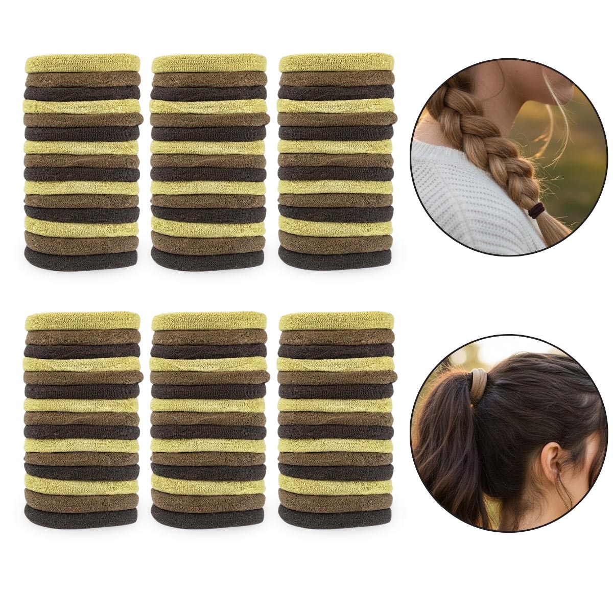 600 - Elásticos Para Cabelos em Tons de Bege, Marrom e Nude